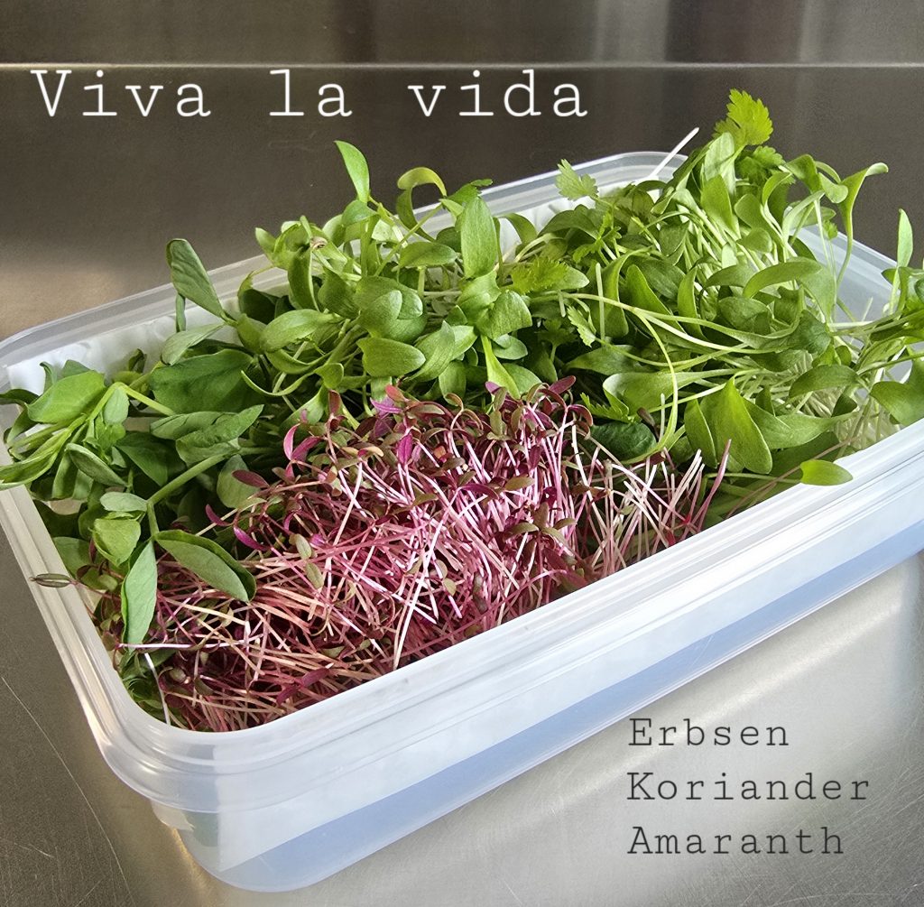 Die Microgreens werden jede Woche frisch mit Bio-Samen und Bio-Erde angebaut. Mittwochs wird geerntet. Donnerstags hast du schon frische Microgreens. Bitte ca. 2 Wochen vor Ernte bestellen. Spontane Bestellungen sind auch möglich solange der Vorrat reicht! (siehe Angebote unten)